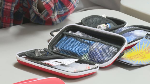 The Saskatoon Tribal Council’s health centre has expanded its hours in response to the crisis. Inside, staff member Evan Cardinal demonstrates how to use naloxone kits—the emergency medication that can temporarily reverse opioid overdoses.