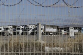 Desperate Gazans swarmed food distribution trucks yesterday in…