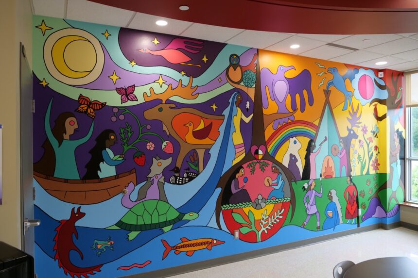 Une nouvelle murale éclatante orne désormais les murs du Collège Sainte-Marie à Sault-Sainte-Marie, transformant la salle de culture autochtone de l’école en un espace d’apprentissage, de guérison et de célébration du patrimoine anishinaabe.